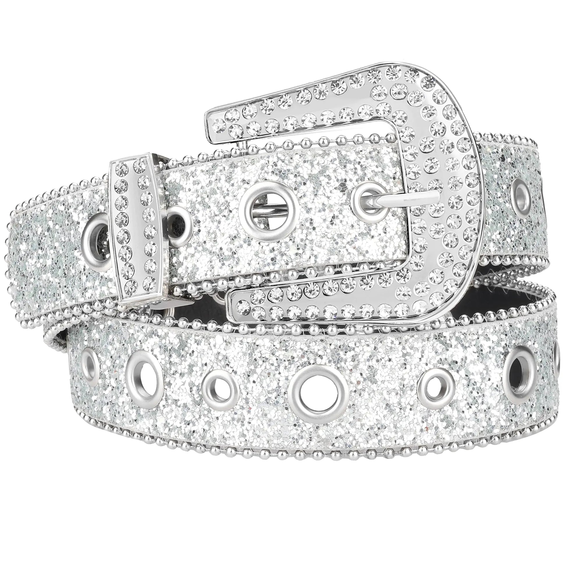 macoking Rhinestone Diamond Belt Silver Grommet Belt Bling Belts for Women Jeans Pants M